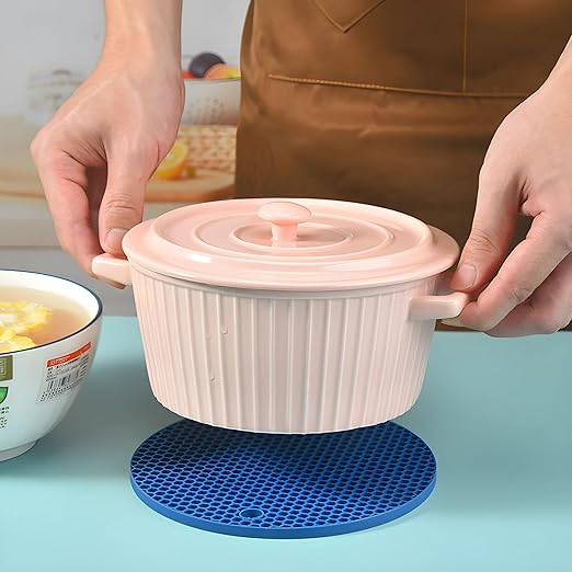 Made with premium food-grade silicone, these trivet mats offer safety, durability, and reliability for everyday kitchen use. The non-toxic, BPA-free silicone is heat-resistant and sturdy, making it perfect for holding hot pots, pans, and dishes while protecting your countertops and tables. Its flexible yet strong construction ensures long-lasting performance without losing shape or color, even after repeated cleaning. Since they are made from food-grade material, you can use them confidently around meals knowing no harmful chemicals come in contact with food. Combining safety, quality, and practicality, these mats are an essential addition to any modern kitchen.